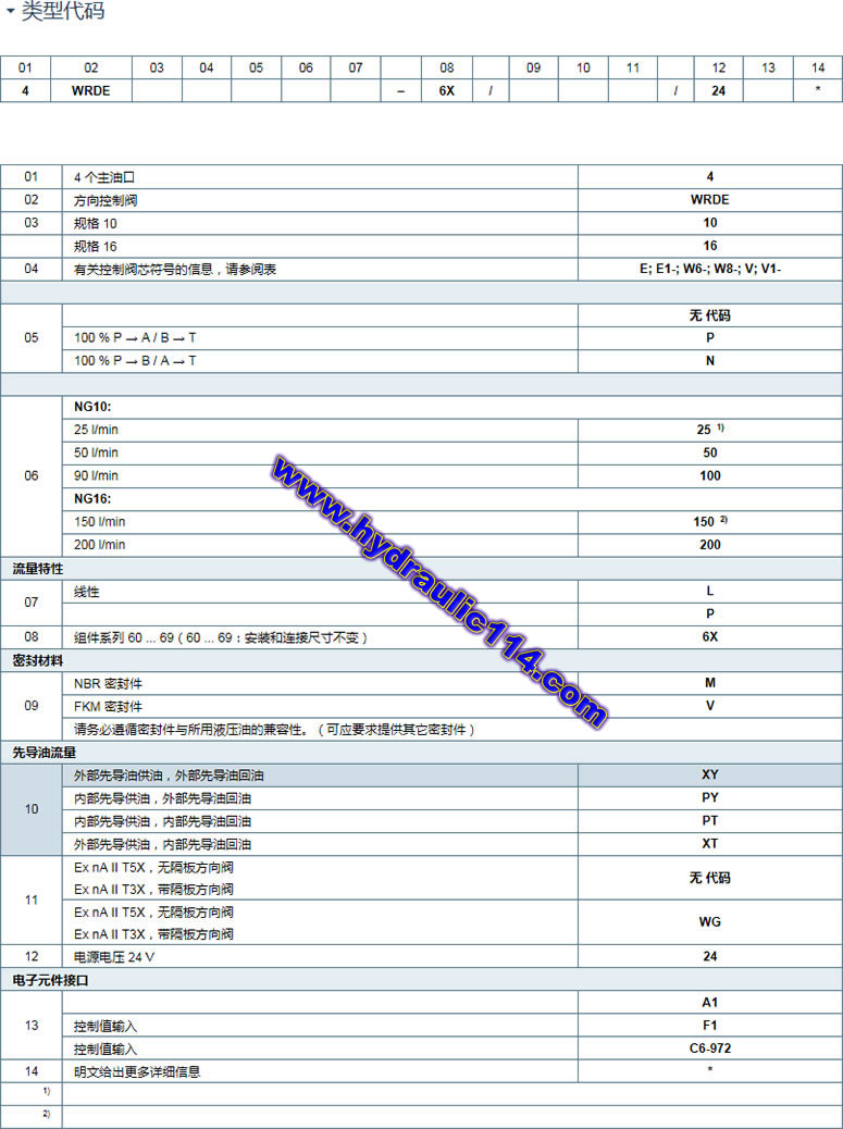 | 4WRDE-6X 型三级方向控制阀详细技术参数: | ||