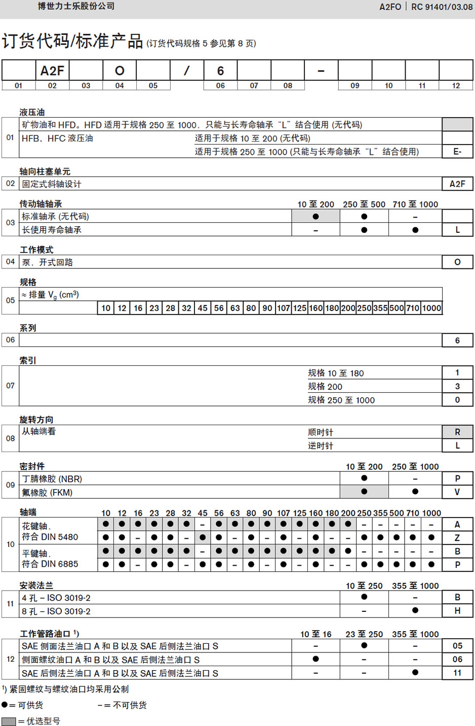力士乐A2FO型轴向柱塞定量泵详细技术参数: